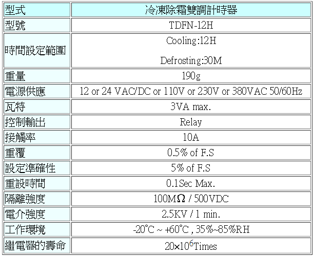 TDFN-12H 220V雙計時器(冷凍)